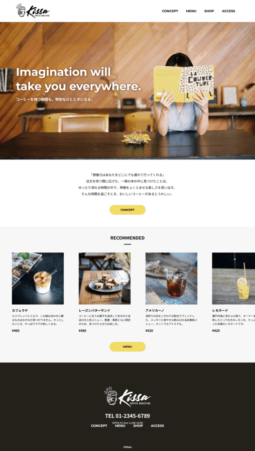 概要 架空のコーヒーショップのWEBサイトです。シングル…
