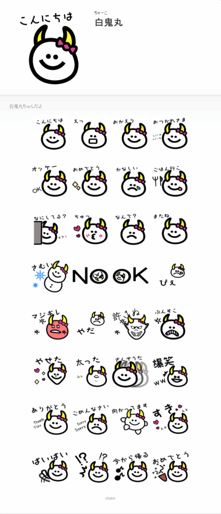 mr.bee friendsの白鬼丸というキャラクターをメインにした文字入りスタンプの依頼があり作成しました。